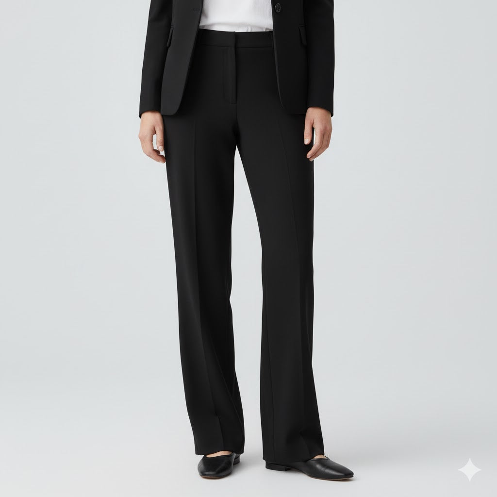 Elegantne poslovne hlače ravnog kroja koje laskaju svakoj figuri. Visoki struk i diskretno kopčanje osiguravaju besprijekoran i profesionalan izgled. Udoban materijal omogućuje slobodu pokreta i cjelodnevnu udobnost. Kombinirajte ih sa sakoom iz iste linije za potpun dojam ili nosite samostalno uz bluzu ili pulover