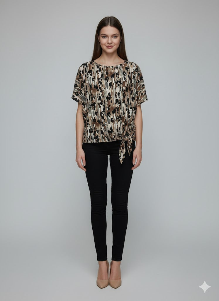 Naša bluza spaja bezvremensku eleganciju s modernim detaljem – efektnim čvorom na dnu koji joj daje opušten i chic karakter. Izrađena od laganog i prozračnog materijala, pruža cjelodnevnu udobnost
